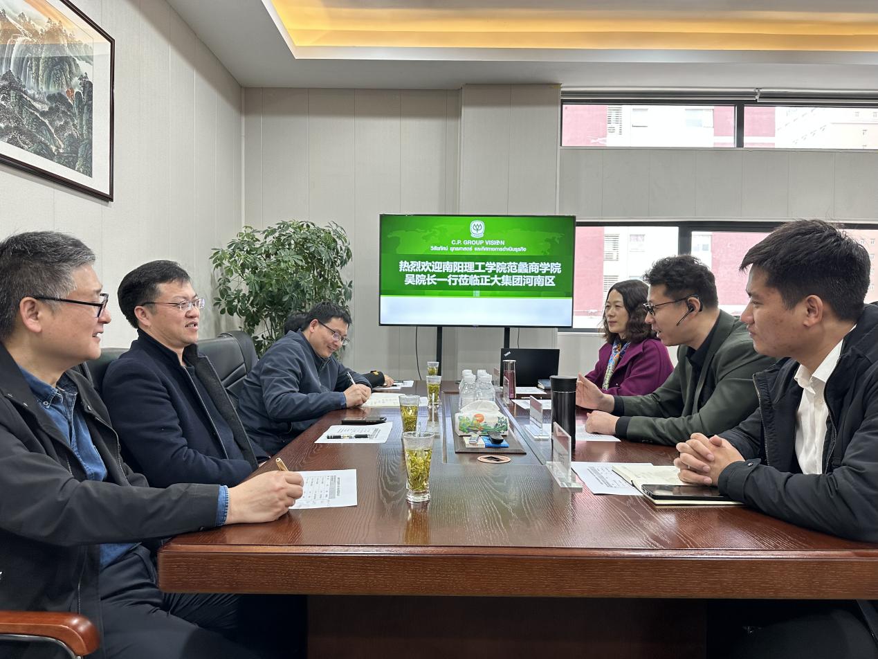 吴战勇介绍了学院发展历程及在产教融合、人才培养、科研创新等方面取得的办学经验与成绩,感谢正大集团对学院发展长期的大力支持。正大集团以农牧业、食品业、商业零售业为核心的业务领域契合南阳产业发展,希望充分发挥双方优势资源,共同为南阳产业发展和推进南阳乡村振兴战略实施做出应有贡献。双方共同探索构建人才培养长效机制,有效对接用人需求,希望有效推动人才培养、专业建设、校企合作、实习就业等领域不断上新台阶。