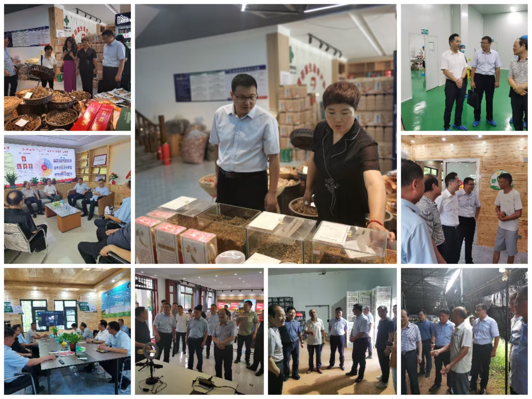 郭永奇一行首先实地调研了重点帮扶企业南召县康信菌业有限公司及下属的南召康信菌业消费扶贫专业馆的南召县土特产品和南召县康信米线厂的生产各环节,接下来实地考察了南召县四棵树乡的高峰庵村的大理石、蜂蜜、旅游等产业发展状况和郝氏原生态养殖发展有限公司的生态养殖基地、直播带货现状,然后考察了南召县留山镇的土门村村史馆、蚕林菌等产业发展状况和南召县上官牧园种植农民专业合作社的冷链物流建设、香菇生产基地及其销售状况。南召县康信菌业有限公司、四棵树乡、留山镇以及相关村委和企业负责人陪同考察调研。