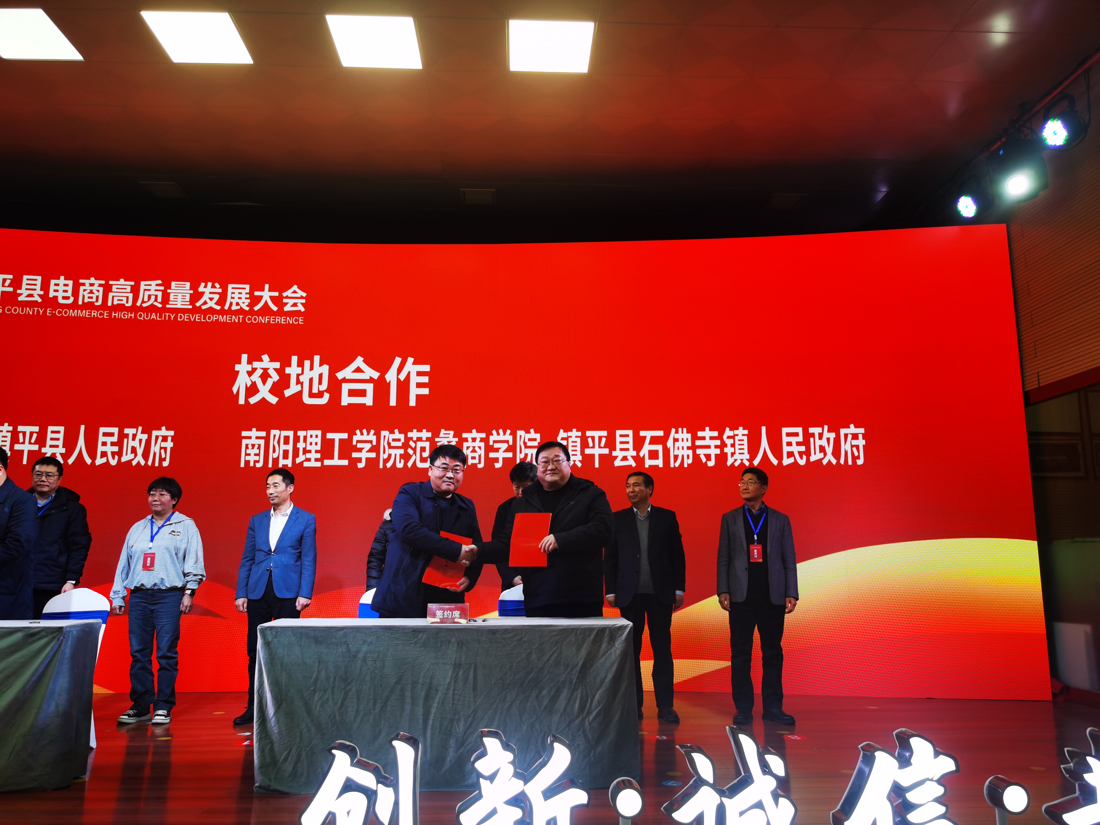 下午,闫合占一行应邀参加了镇平县电商高质量发展大会。会上,范蠡商学院与石佛寺镇人民政府签订了合作协议书。