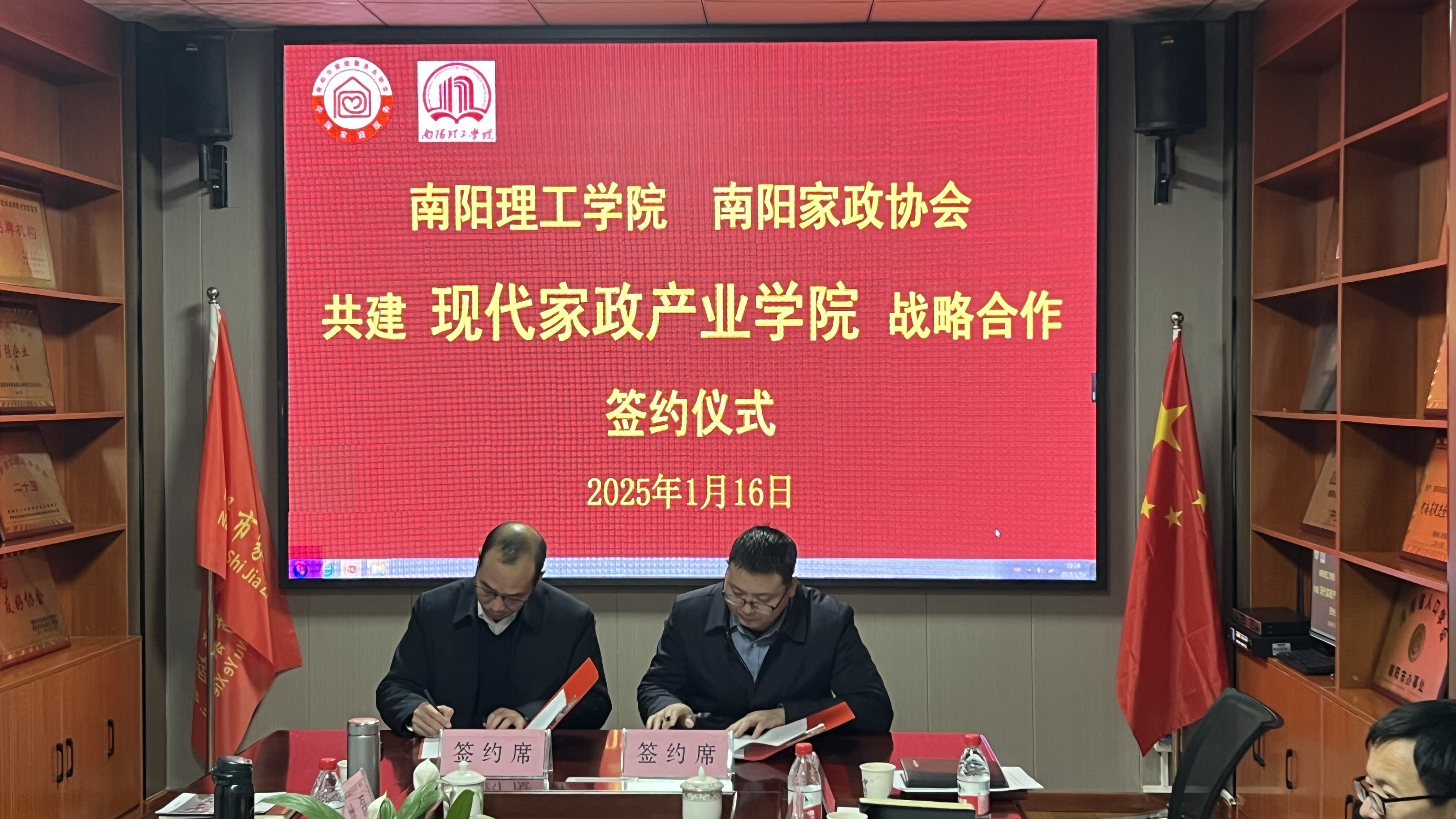 范蠡商学院院长郭永奇与南阳市家政服务业协会会长赵国恒签署了共建现代家政产业学院合作协议。